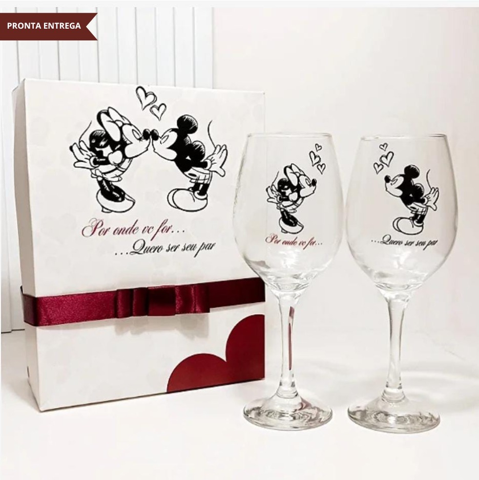 Caixa Presente com 2 Taças de Vinh* Tema M*ckey e M*nnie